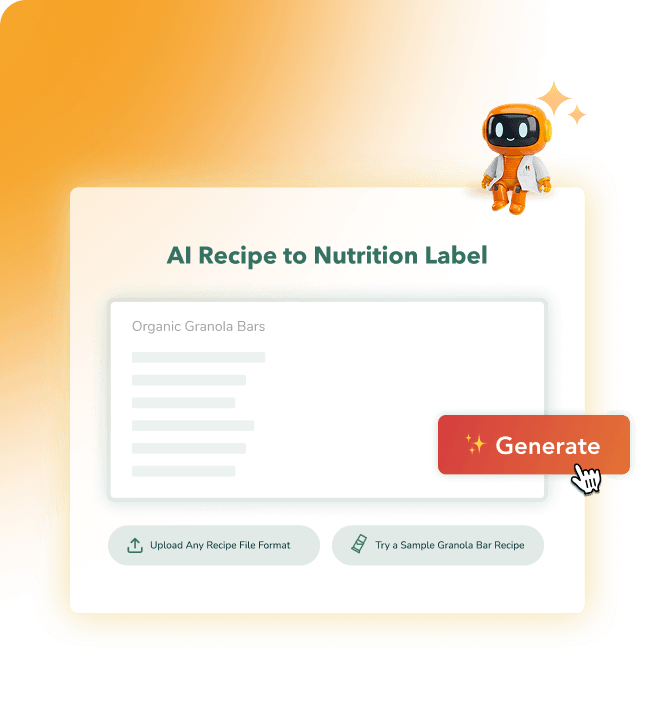 Simply type in or upload a recipe in any format; RIA analyzes it, matches ingredients from our verified database, and populates the builder. It even takes care of your recipe setup from serving size or RACC to creating a recipe name!