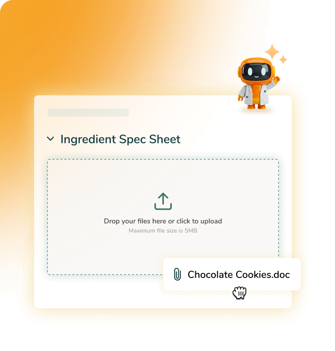 Upload your ingredient spec sheet and RIA’s AI engine automatically extracts nutrients, ingredients, and allergens then populates your custom ingredient database.