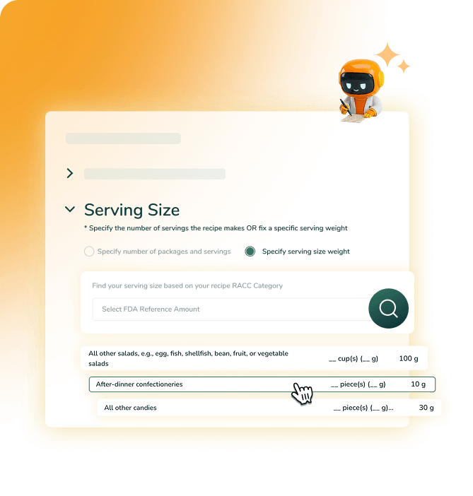 Pinpoint the closest FDA category and RACC through RIA’s intelligent recipe analysis, then review and approve the recommendation to stay compliant without the guesswork.
