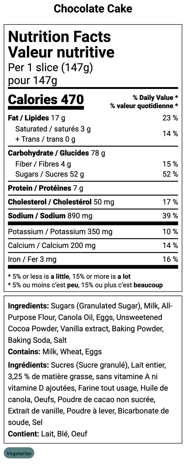 - Displayed in household units: A nutrition facts label must use common measurements such as cups, tablespoons, teaspoons, pieces, slices, or fractions, followed by the metric weight (grams or milliliters).