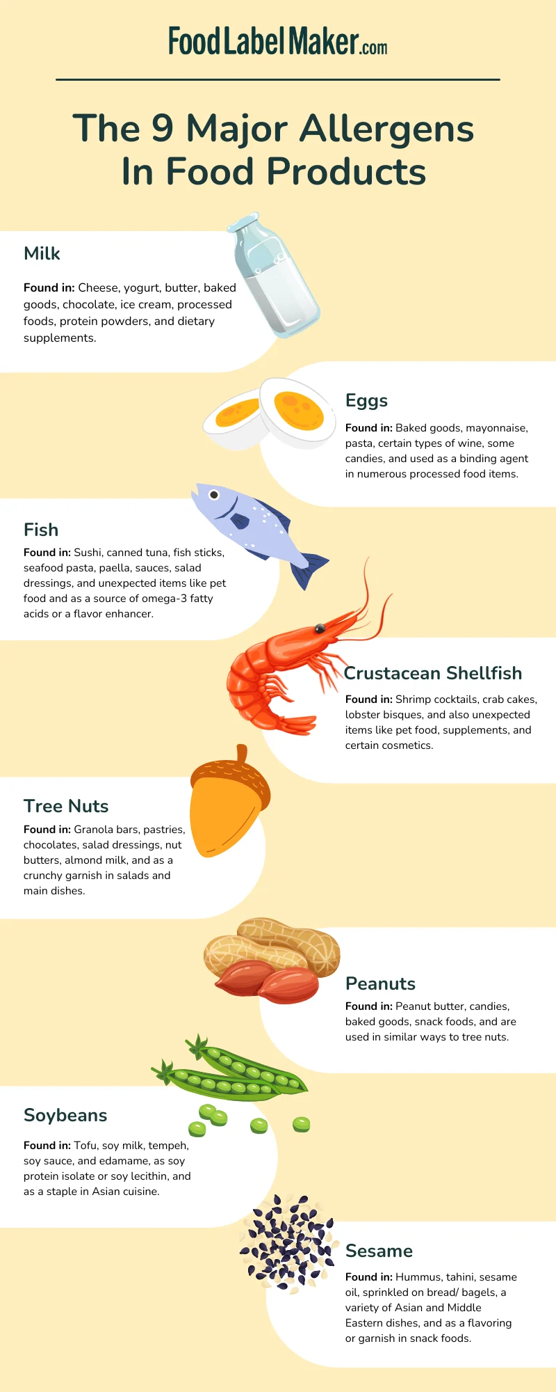 Each of these allergens has its own unique characteristics and can be found in various food products. It’s essential for manufacturers to be aware of these details to ensure accurate labeling and for consumers to recognize these terms when checking product ingredients. Proper food labeling is not just about compliance; it’s about ensuring the safety and well-being of consumers.
