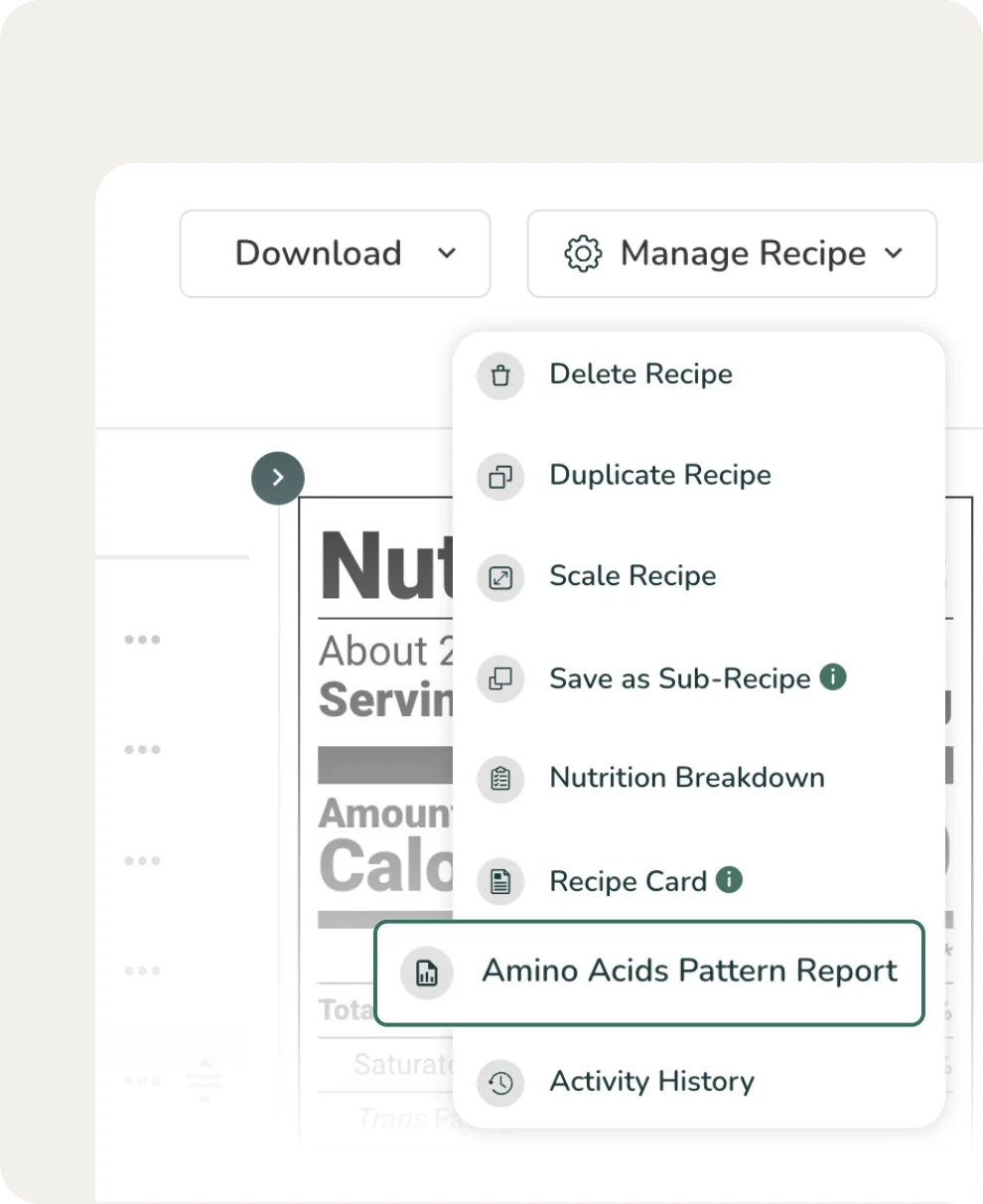 Con perfiles nutricionales mejorados, puede centrarse en optimizar las recetas para obtener fuentes de proteínas de alta calidad. Nuestra herramienta ayuda a superar el reto de combinar alimentos de origen vegetal para satisfacer las necesidades de aminoácidos esenciales.