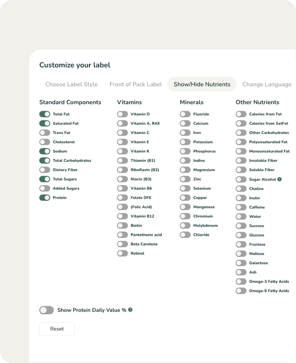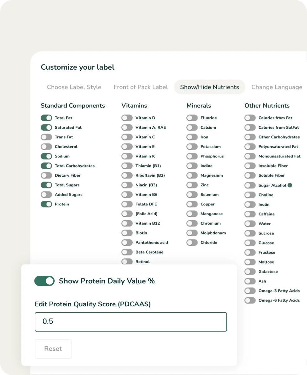 Su siguiente paso es asegurarse de que las etiquetas de sus alimentos son precisas y cumplen con la puntuación PDCAAS y el % de valor proteico diario correctos. Reserve una demostración o consulte nuestros planes de precios hoy mismo para empezar.