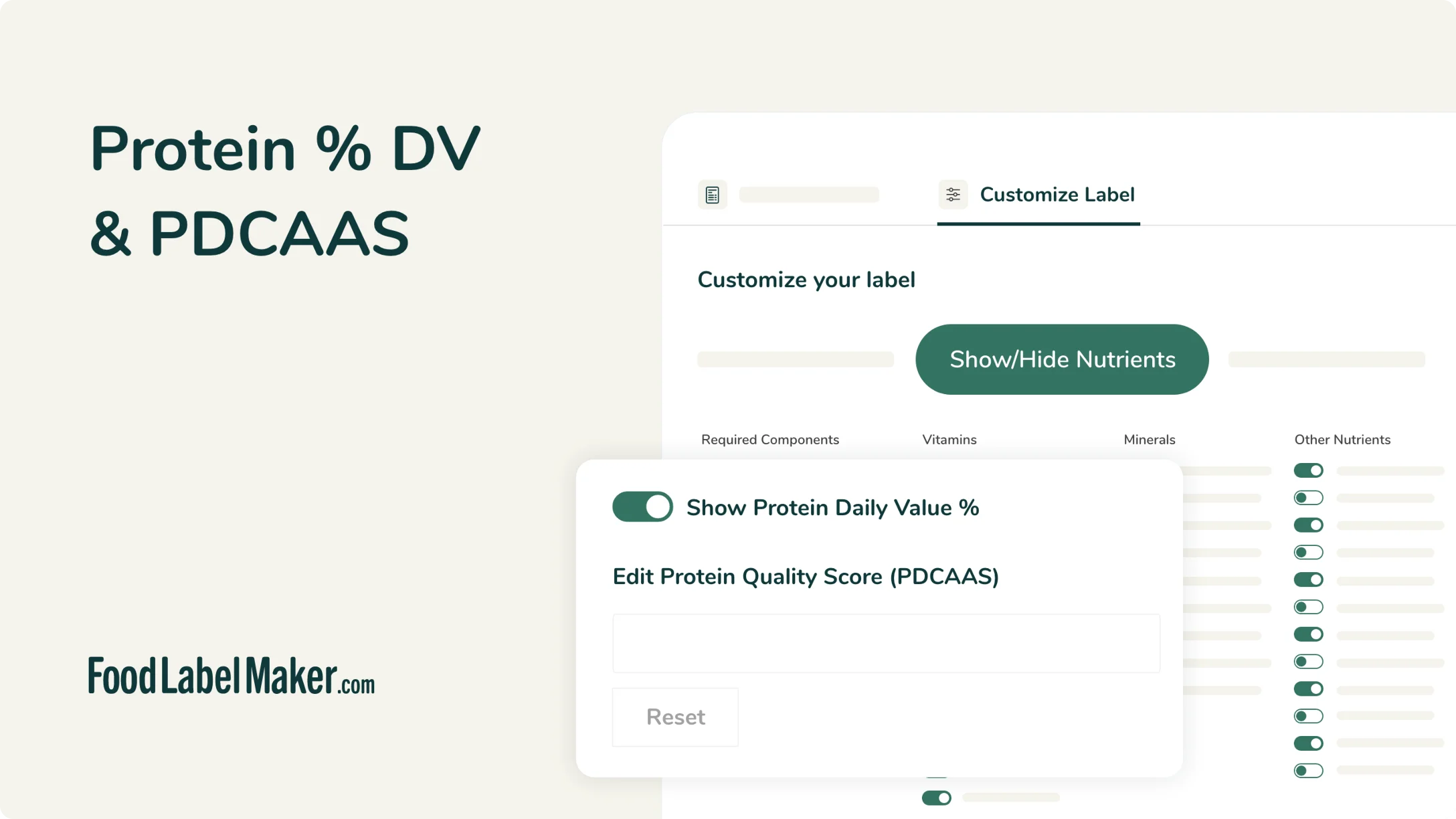 Indicar el % de valor diario de proteínas en las etiquetas nutricionales es crucial para que el consumidor conozca su valor diario y sus objetivos de salud. La puntuación de aminoácidos corregida por digestibilidad de la proteína (PDCAAS) es el método oficial para determinar la calidad proteica de un producto alimenticio.