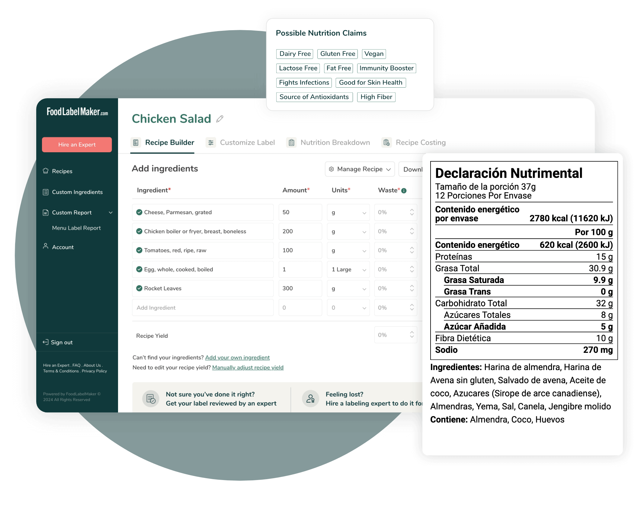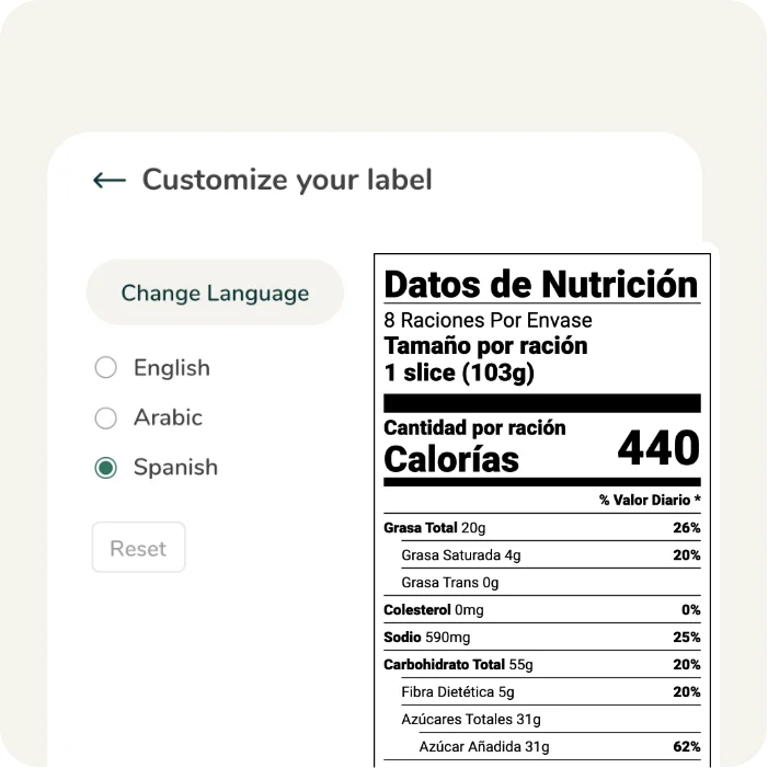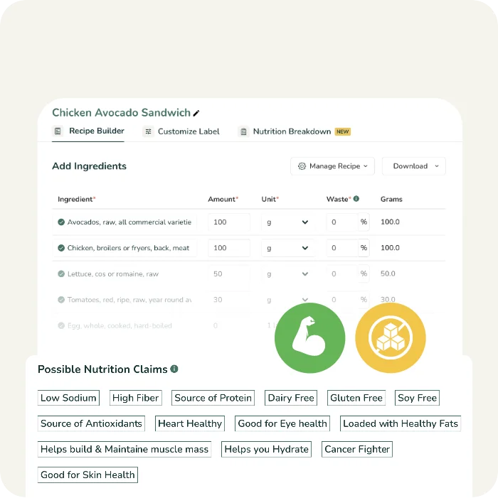 Nuestro exclusivo algoritmo nutricional escanea su receta y sugiere posibles alegaciones nutricionales y de marketing que puede hacer basándose en los últimos requisitos normativos de su mercado.