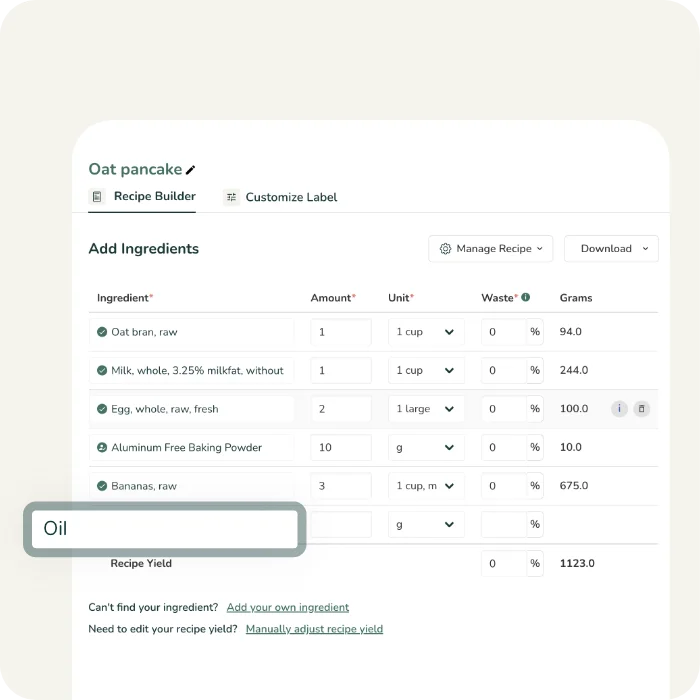 Añada ingredientes personalizados sin problemas a su cuenta y utilícelos en cualquiera de sus recetas.