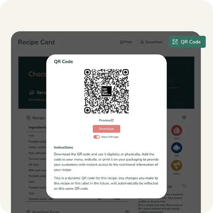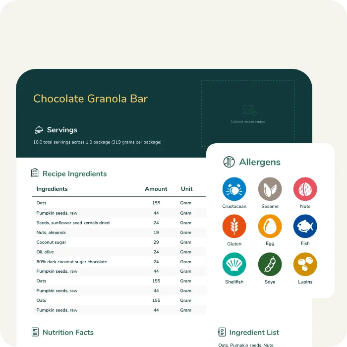 Nuestra función integrada de escaneado de alérgenos analiza su receta y detecta automáticamente los alérgenos que deben declararse en la etiqueta de su producto.