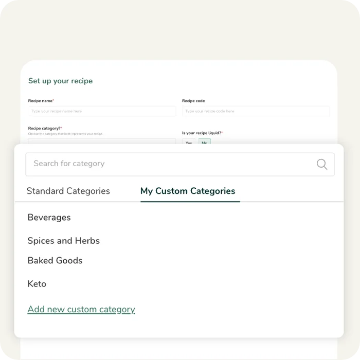 Cree categorías personalizadas para sus ingredientes y recetas.