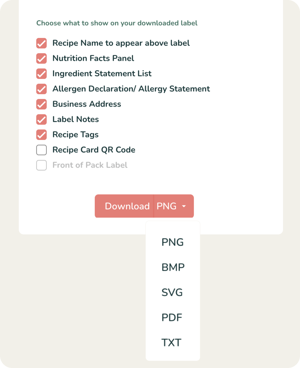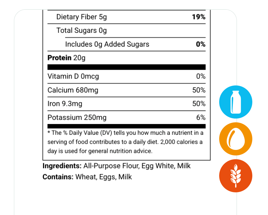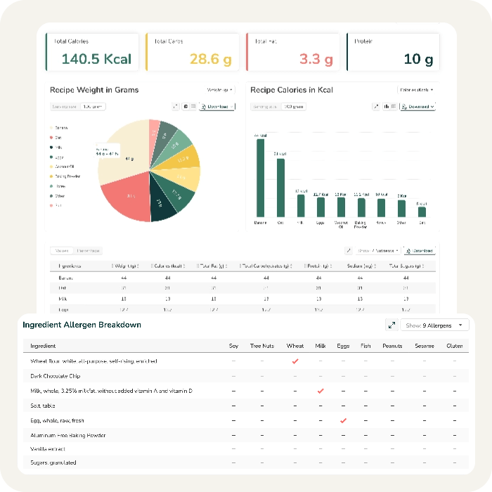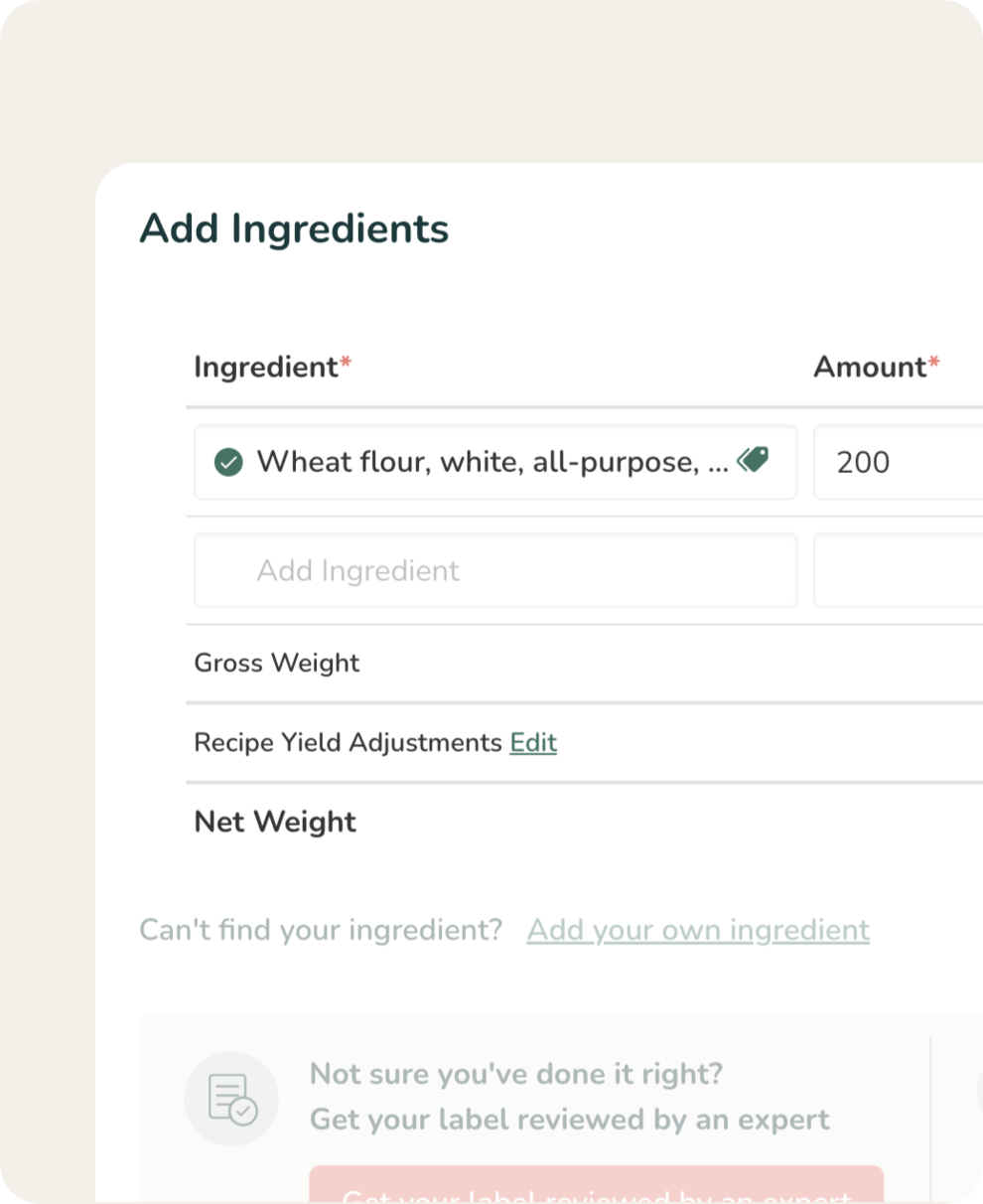 As you create a recipe and input ingredients, our built-in allergen detector automatically scans each item to identify any of the major allergens that require declaration.