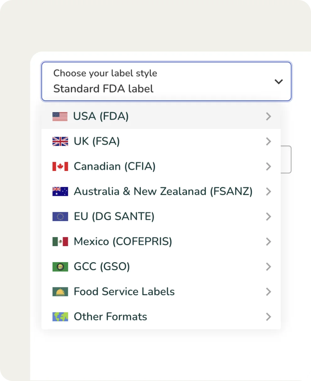 Navigate complex global food regulations with ease and enter new markets with confidence. Generate compliant food labels for any region.