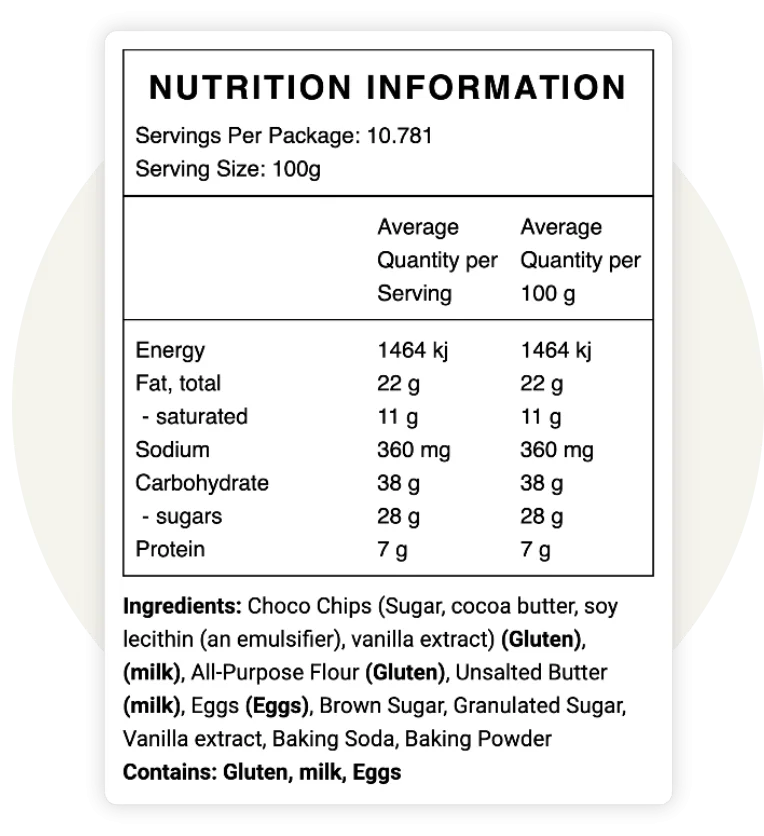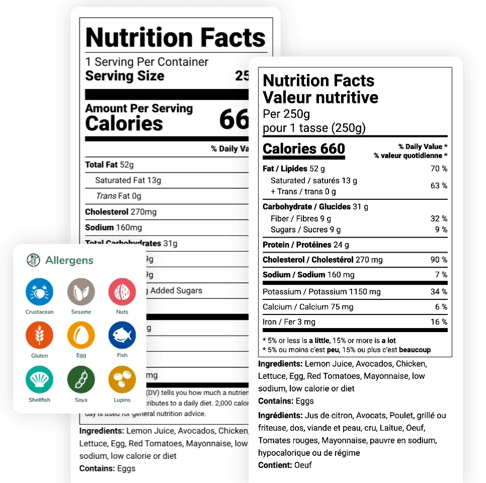 Our platform streamlines the creation of nutrition facts labels, ensuring accurate allergen information and ingredient lists.