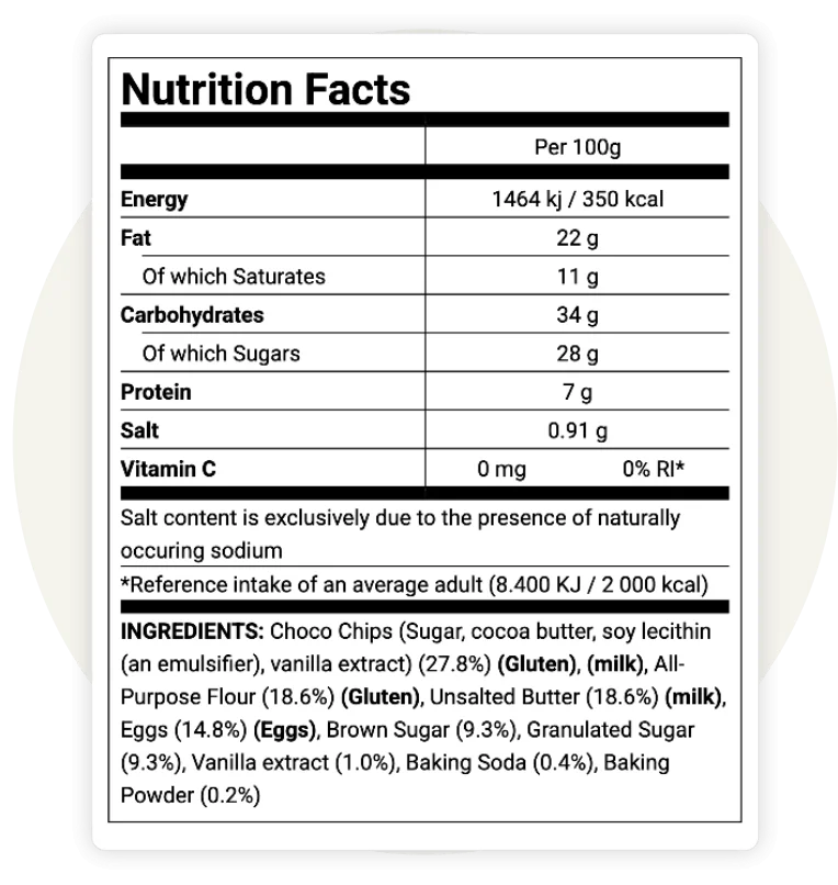Our software allows you to generate a standard EU-compliant nutrition label, ensuring your products are ready for all 27 member states.