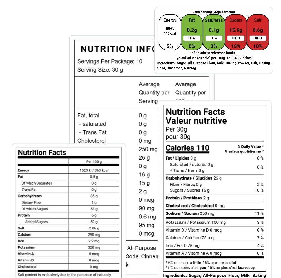 Navigate complex global food regulations with ease and enter new markets with confidence. Generate compliant food labels for any region.