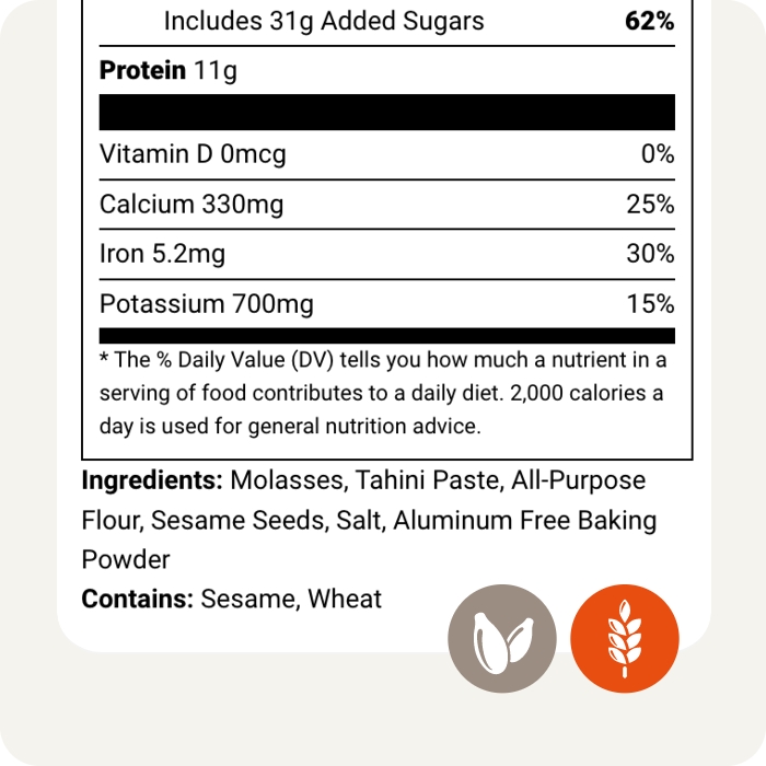 • Added Sugars: “Added Sugars” is now included on the label to distinguish between naturally occurring sugars and those added during processing or preparation.