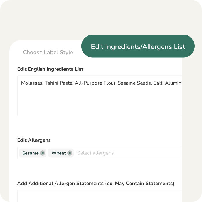 Editable Ingredients and Allergen Statements