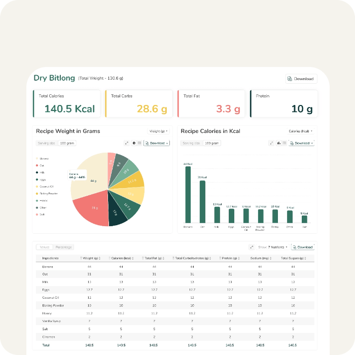 • Recipe Analysis: Start by analyzing the recipe or formulation for your food product. Determine the quantities and specific brands of ingredients used.