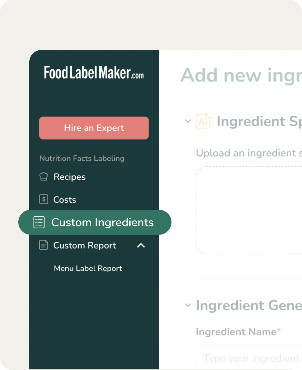 For more information on ingredient specification sheets, read our blog post on Ingredient Specification Sheets For Food Label Creation, or create a free label to test our data extraction tool.