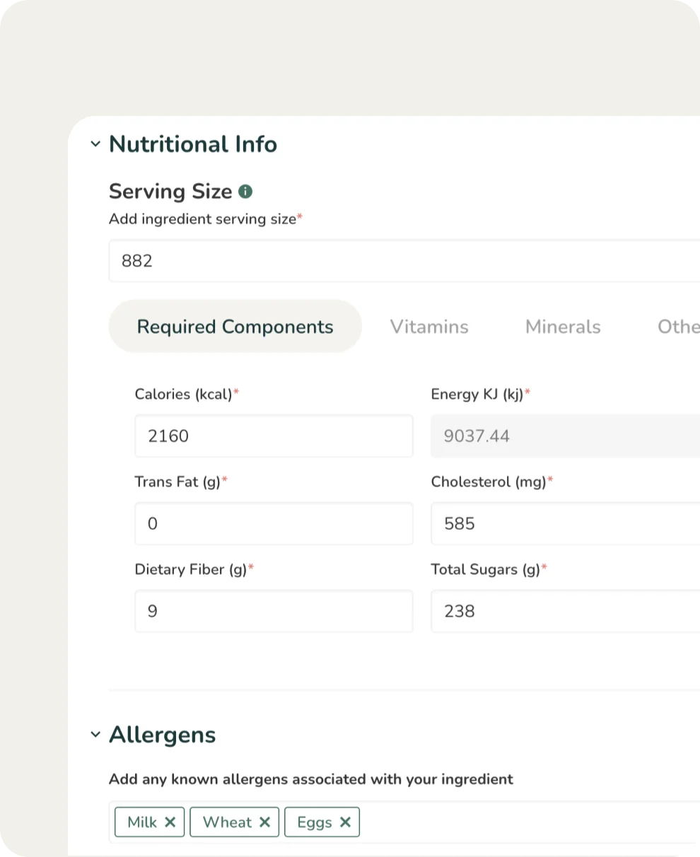 Your ingredient can then be easily used when generating accurate, effective, and compliant nutrition labels.