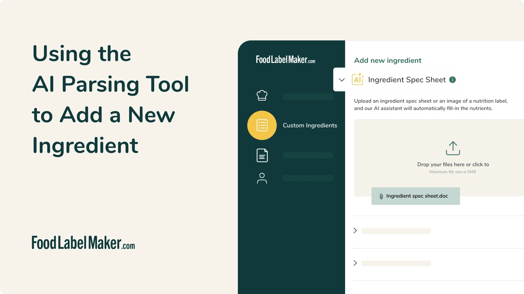 For more information on ingredient specification sheets, read our blog post on Ingredient Specification Sheets For Food Label Creation, or create a free label to test our data extraction tool.