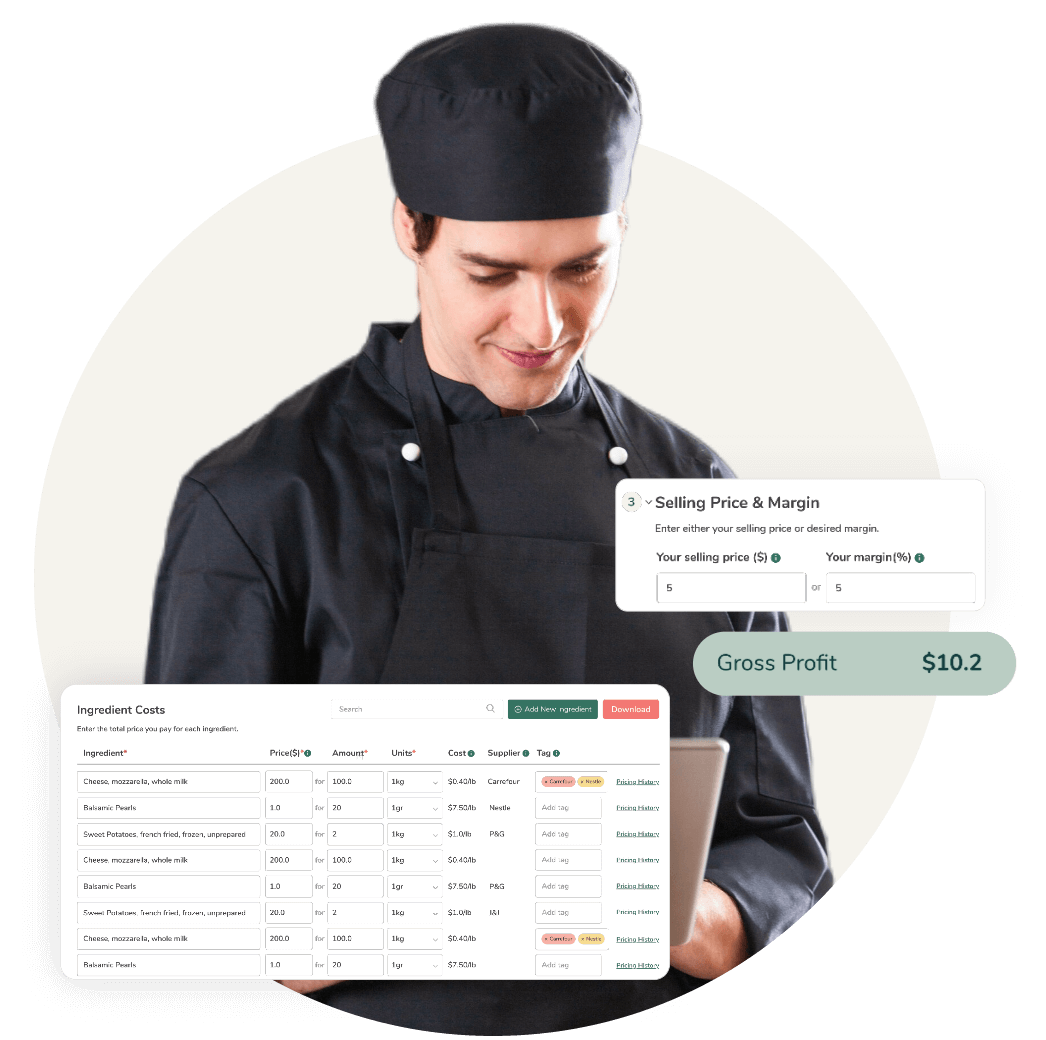 - Reduce food costs with our recipe costing tool. Easily input your raw ingredients, suppliers, overheads, and optimize costs as recipes evolve