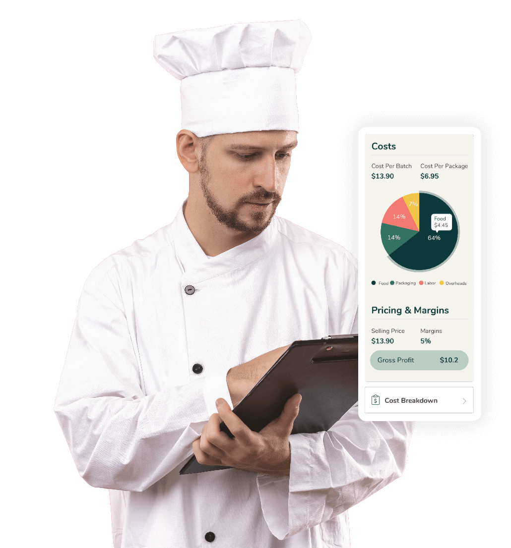 - Optimize Recipe Costs: Input your ingredients’ costs per batch and per package, insert additional expenses such as package, labor, and overhead costs, and set default margins for your recipes.