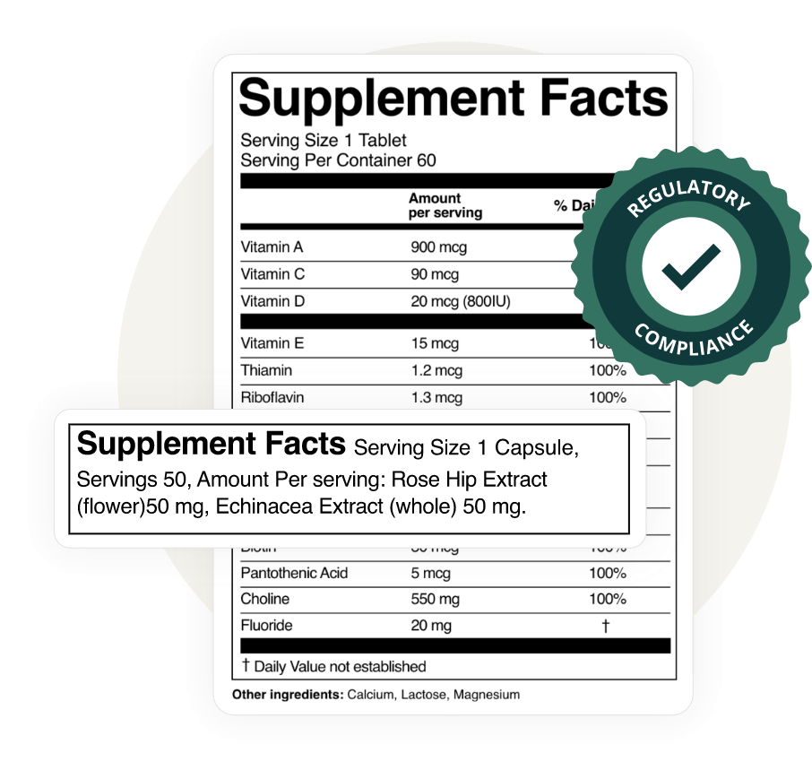 - Accurately generate compliant Supplement Facts labels