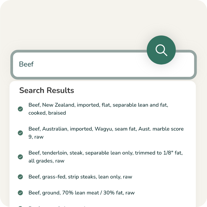 Access our continuously expanding ingredient database with more than 500,000+ ingredients, meticulously reviewed and updated by our team of nutritionists.