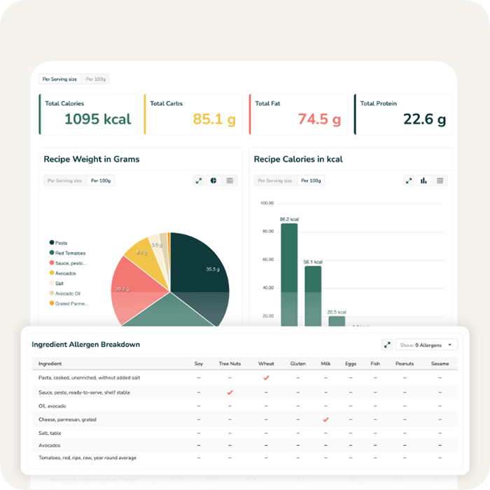 Easily track allergens in your recipes with our new Allergen Breakdown Table in your recipe’s Nutrition Breakdown Report! Now, you can view allergen presence for each ingredient, toggle allergens on or off, and download the full report.