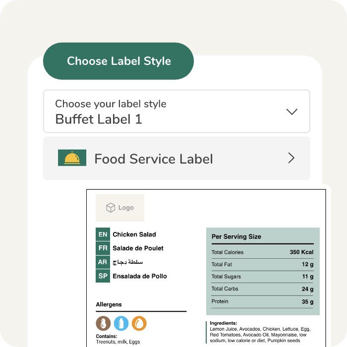 Implement a menu-style label for your recipe with multiple language and customization options.