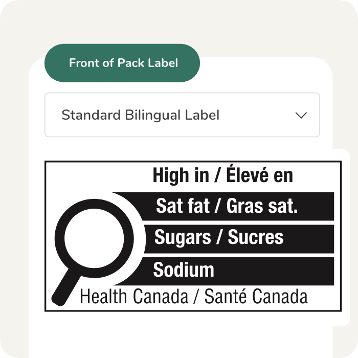 Food Label Maker will automatically detect if your product exceeds thresholds for saturated fat, sugars, or sodium and will generate the required Health Canada warning symbol—saving you time and ensuring accuracy.